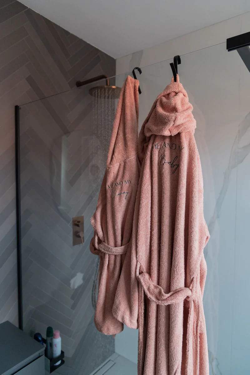 Un modello ricco di stile abbinato all'accappatoio per la mamma nella morbidissima spugna di bambù organico: il must have per questo inverno!