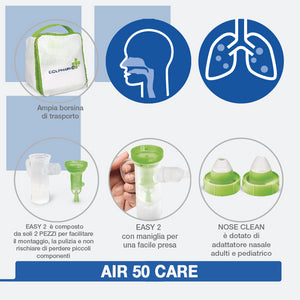 AIR 50 CARE è inoltre dotato del sistema per doccia nasale NOSE CLEAN per il trattamento delle vie aeree superiori.