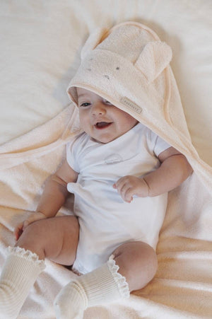 Rendi il momento del bagnetto del tuo piccolo un'esperienza irresistibile con l'Asciugamano per Neonati con Guantino! Questo set è la risposta perfetta alle esigenze della routine di cura del tuo bambino. Composto da un asciugamano completo di orecchie e un guantino coordinato, offre un'esperienza di asciugatura coccolosa e adorabile. Realizzato con la magia della spugna di bambù organico, questo set supera ogni aspettativa. La capacità di assorbimento tripla rispetto alla spugna di cotone biologico garantisce che il tuo tesoro rimanga asciutto e avvolto in un abbraccio di morbidezza dopo ogni dolce bagnetto.