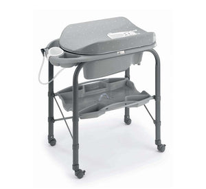 Il prodotto è equipaggiato con comodi vani portasapone e porta spugnetta, un doccino per il risciacquo, e un pratico sistema di scarico con tappo e tubo. Cambio è dotato di un ampio cassetto portaoggetti con spazio per flaconi, e di 4 ruote (2 con freno), che permettono di spostarlo agevolmente. Grazie alla sua altezza di 40 cm, può essere posizionato anche sui sanitari. Il sistema di chiusura ultracompatto, azionabile con una sola mano, rende Cambio pratico e innovativo. Utilizzabile fino a 11 kg. Testato per la stabilità laterale, frontale e posteriore per prevenire il ribaltamento con il bambino e realizzato con materiali atossici, conformi alla norma EN 71, e privi di ftalati (direttiva 2005/84/CE)
