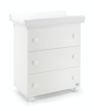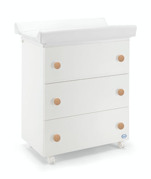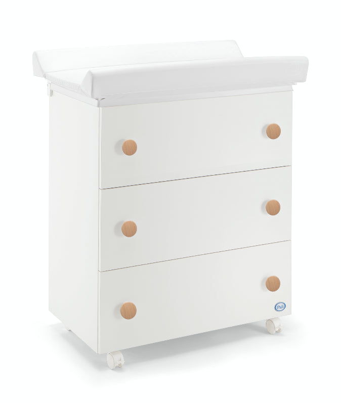 - I pratici cassetti permettono di riporre tutti gli accessori necessari per il cambio e il bagno del bambino, mantenendo l'area in ordine.