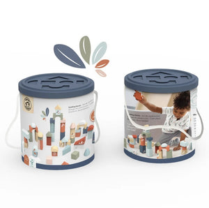 I blocchi sono confezionati in un secchio rotondo con manico e con coperchio di selezione delle forme che rende più divertente collezionarli.