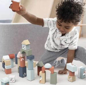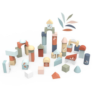 Set da 50 blocchi di legno colorati per bambini utili per l'apprendimento della coordinazione occhio-mano.