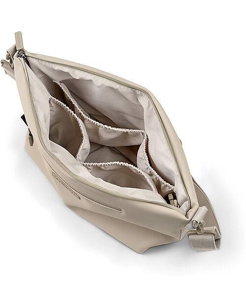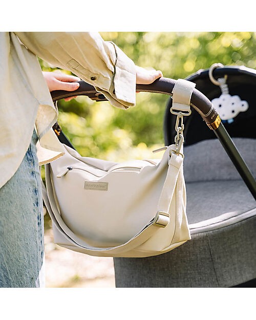 Questa borsa è pensata per offrire una funzionalità impeccabile: l'ampio scomparto principale e le quattro tasche interne, insieme a una tasca esterna, ti permettono di tenere tutto in ordine e a portata di mano. Gli appositi ganci ti permettono di attaccarla facilmente al maniglione del passeggino, mentre la tracolla regolabile garantisce il massimo comfort durante gli spostamenti.