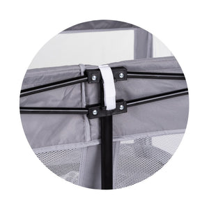 Grazie al pratico design pieghevole, il box è immediatamente pronto all’uso e non richiede montaggio. Si apre e si richiude in pochi secondi, risultando ideale anche per l’uso temporaneo o in viaggio.