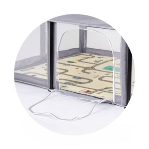 La porta laterale con chiusura a cerniera consente al bambino di entrare e uscire in autonomia, stimolando l’indipendenza in modo semplice e sicuro.