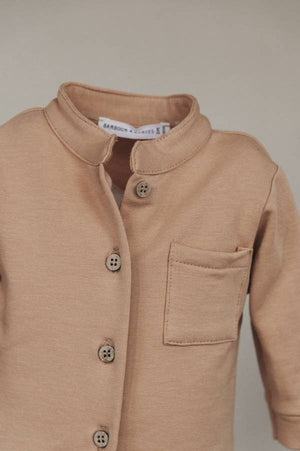 Realizzata con un morbido tessuto naturale, questa camicia per bambini garantisce comfort e stile in ogni occasione. Questo elegante capo è caratterizzato da uno scollo alla coreana e raffinati bottoncini sulla parte anteriore, che ne esaltano il design sofisticato.