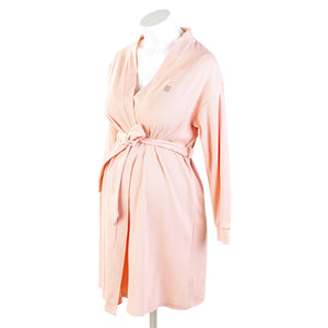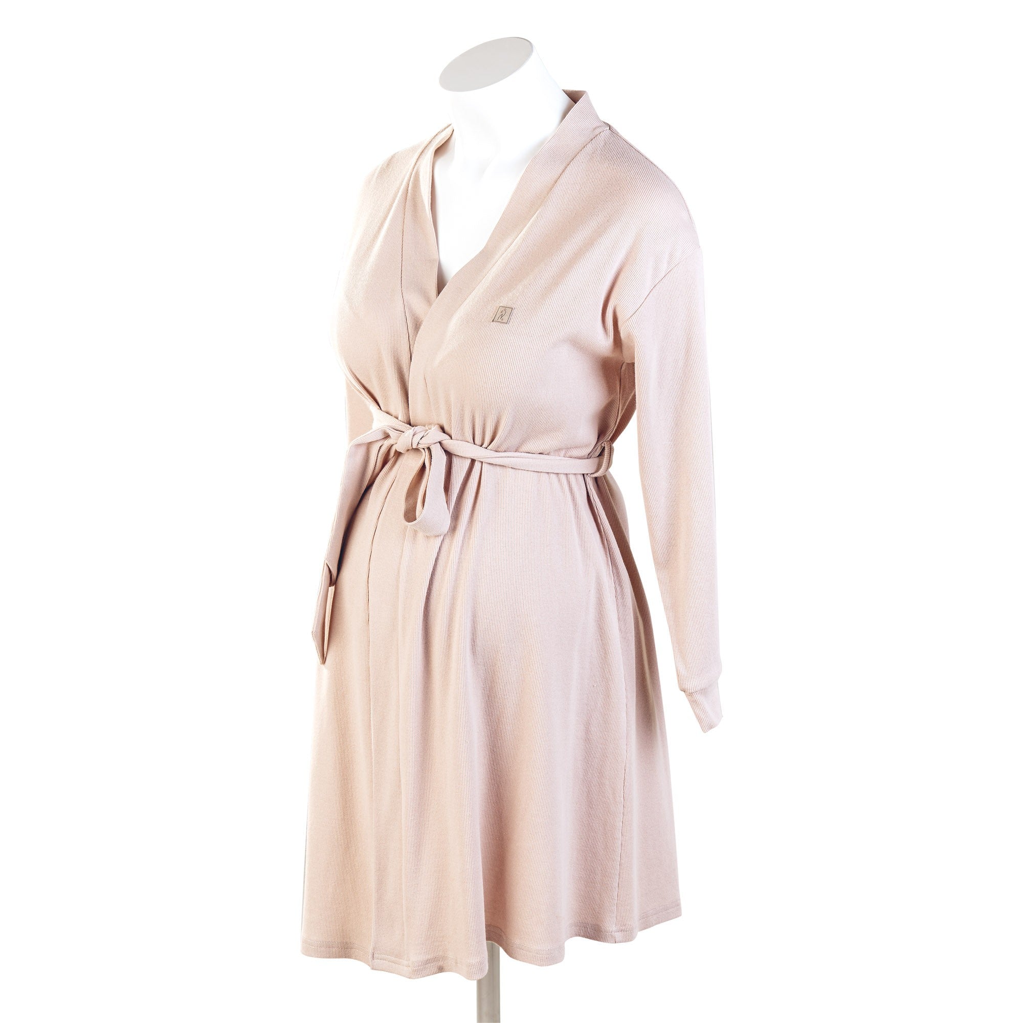 Comoda camicia da notte manica lunga per gravidanza e allattamento. Realizzata in cotone organico rigato GOTS. Taglia unica.