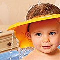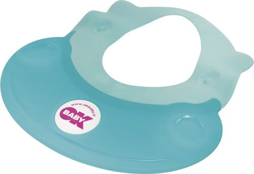 L'acqua scorre senza bagnare il volto del bambino. Ciambella in gomma estensibile, visiera in polipropilene rigido.