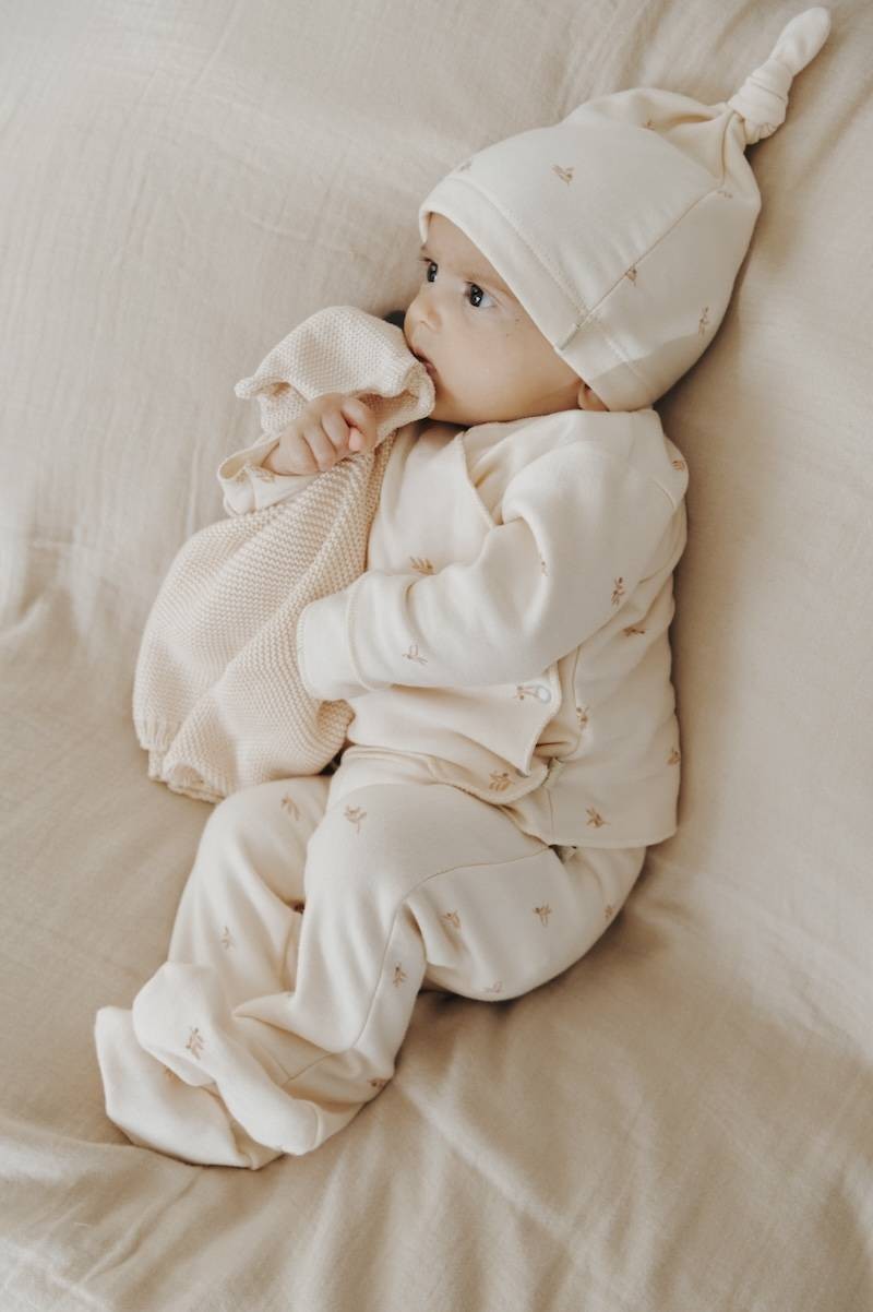 Il cappellino per neonati in taglia unica con nodo è perfetto per neonati e per la nascita, tra i più indicati da portare in valigia parto all’ospedale. È realizzato in bambù organico, un materiale sofficissimo e davvero sensibile. Essendo anche un materiale termoregolatore, permette di tenere la testa del piccolo alla temperatura giusta sin dalla nascita.