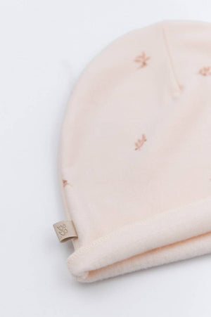 Il cappellino ha l’interno leggermente felpato, questo per mantenere la temperatura del neonato equilibrata. Dello stesso tessuto e colore del cappellino puoi trovare anche oltre alle dolci babbucce, anche completini e tutine abbinate! Potrai quindi creare outfit morbidissimi e all’ultima moda per il tuo piccolo o come idea regalo.