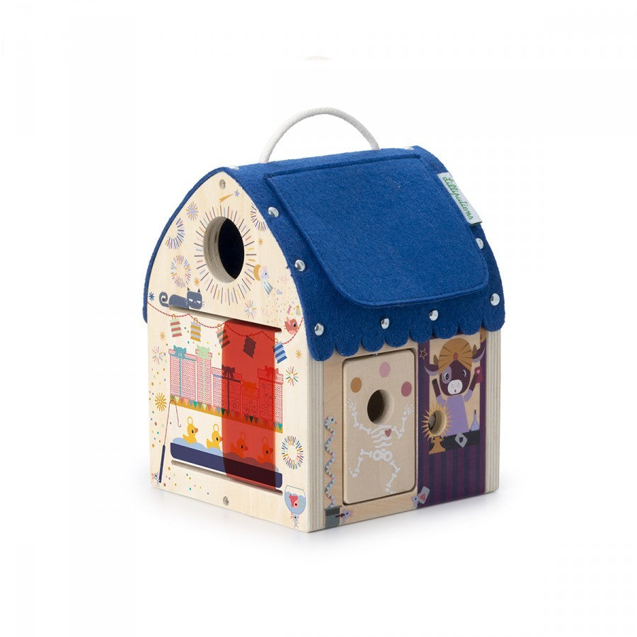 Entra nel magico mondo del Mago Joe con questa casetta in legno, magnificamente illustrata e ricca di sorprese. Ogni lato della casetta offre tante cose da scoprire, con illusioni ottiche che meravigliano gli occhi dei più piccoli e stimolano la loro immaginazione. Questo giocattolo non solo intrattiene ma aiuta anche a sviluppare la vista, le capacità motorie, l'immaginazione e l'intuizione dei bambini.