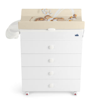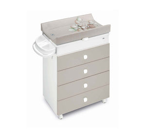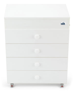 La Cassettiera Asia Cam è una soluzione pratica e sicura per il cambio del bambino, con fasciatoio morbido, vaschetta ergonomica e ampi spazi di archiviazione. Dotata di sistema anti-ribaltamento, ruote con freno e materiali atossici, è un complemento d'arredo funzionale che unisce comfort e sicurezza.