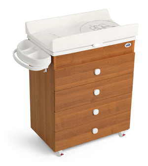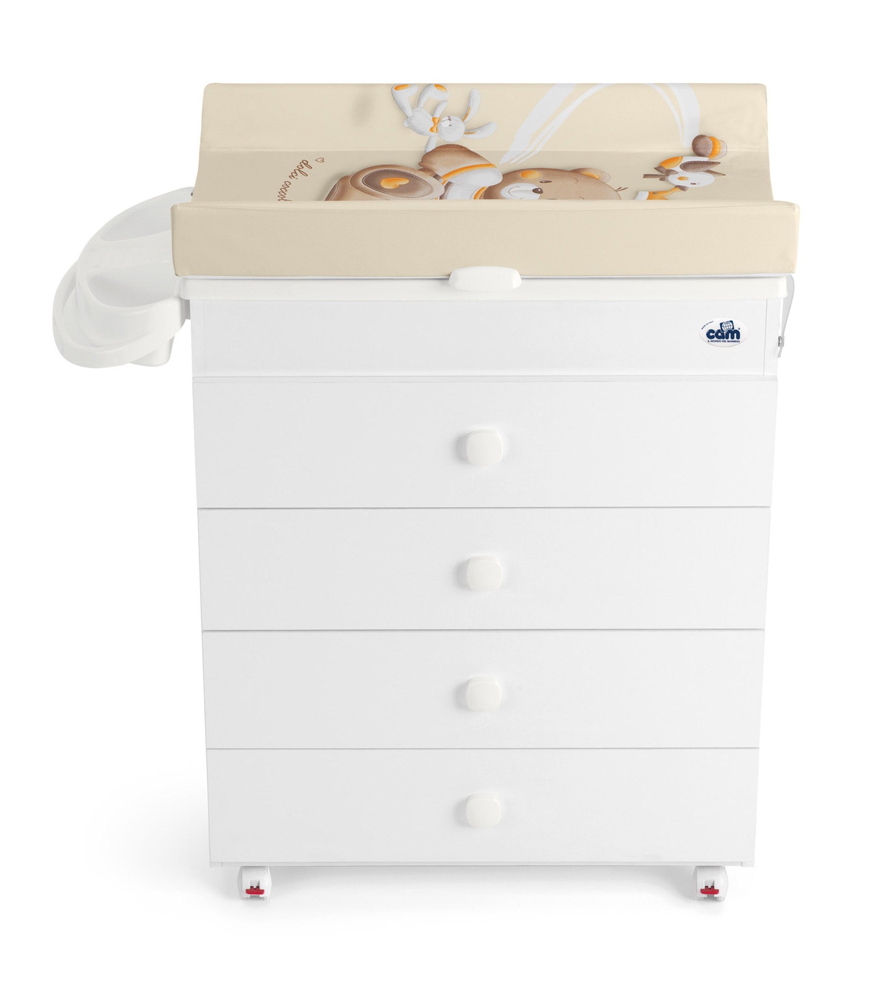 Perfetta per unire funzionalità ed estetica, la Cassettiera Asia Cam offre un fasciatoio confortevole, una vaschetta ergonomica e ampi spazi contenitivi. Grazie al design sicuro, ai materiali atossici e alle ruote con freno, garantisce praticità e tranquillità ai genitori.