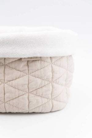 Realizzato con fibre naturali di alta qualità, unisce funzionalità ed eleganza grazie al suo design raffinato. Ideale per completare l'arredamento del bagno o per essere posizionato sopra il fasciatoio. Può essere abbinato alla copertina coordinata nella stessa trama e colore.