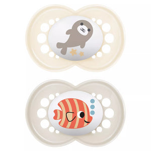 Il ciuccio MAM Original è progettato per bambini da 6 mesi. Con il suo design ortodontico e la tettarella simmetrica, questo ciuccio è pensato per adattarsi perfettamente alla bocca del bambino, favorendo uno sviluppo sano della mascella.