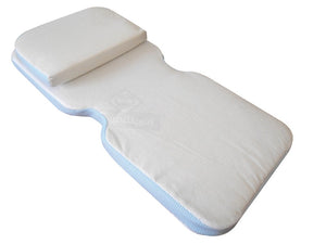 Il tessuto di rivestimento è certificato Sanitized, trattamento antiacaro permanente ai lavaggi per la massima igiene, evita la libera proliferazione dell’acaro e dei batteri principali cause di muffe e allergie. La struttura interna in fibra di poliestere FIBERFORM HD ad alta portanza ortopedica, anallergica e traspirante, assicura la corretta postura della colonna vertebrale. Questo prodotto è antisoffoco con rapporto di prova n° 304740 in base alla norma British Standard 1877-1974 (valori entro il grado di permeabilita’ dell’aria di 20 PASCAL con il metodo BS 4578-1970). Questo completo è studiato per le carrozzine ed è composto da materassino con lati arrotondati per passaggio cinture laterali da 32 x 72 cm e guancialino da 22 x 32 cm.