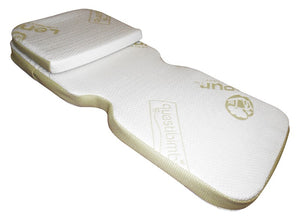Questo completo per carrozzina standard comprende il materassino sagomato con passaggio per cinture laterali da 32 x 72 cm e il guancialino da 22 x 32c m.