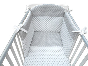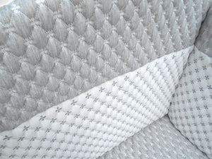 Il set tessile per il lettino Visual di Questibimbi è sfilabile e realizzato in morbido tessuto in rilievo goffrato, effetto melange. Composto da paracolpi, federa guanciale, federa piumone ed imbottitura del piumone.