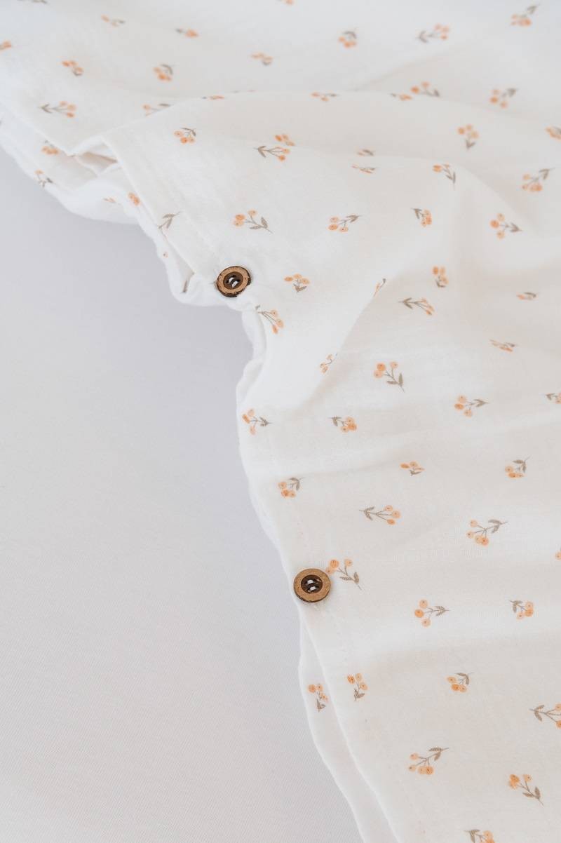 Il sacco copripiumino Duvet cover in print Rosehip di Bamboom, dotato di eleganti bottoni, è realizzato in morbido tessuto di bambù, completamente naturale e traspirante, per garantire al tuo bimbo un alto grado di comfort, mantenendolo sempre protetto e al sicuro.