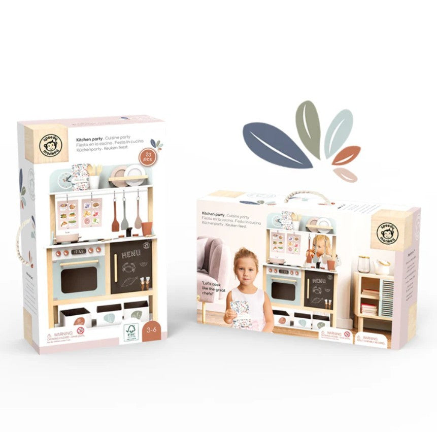 Con la cucina in legno Speedy Monkey i bambini diventano piccoli chef e usando la loro immaginazione cucinano come gli adulti, sviluppando capacità pratiche ma anche abilità sociali.
