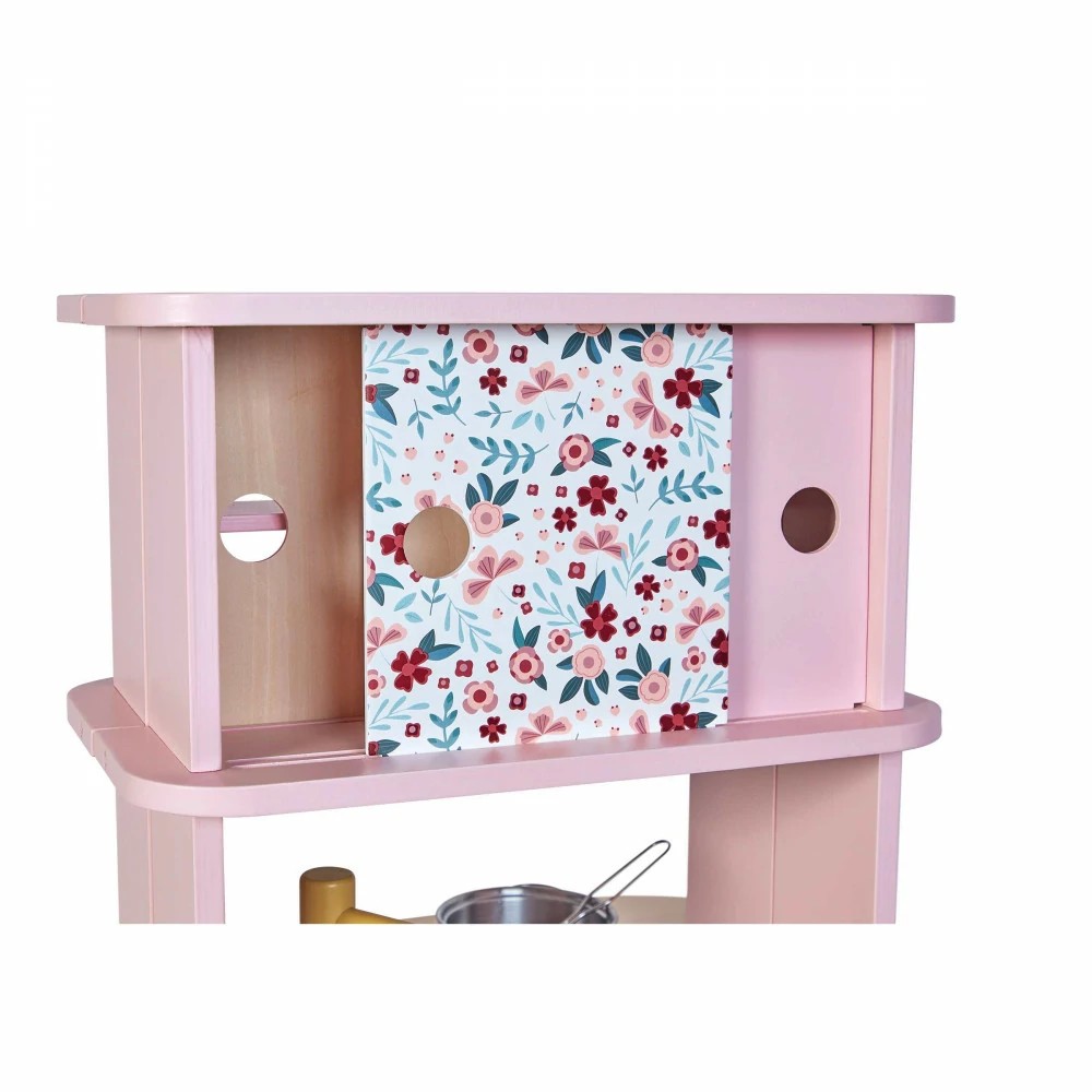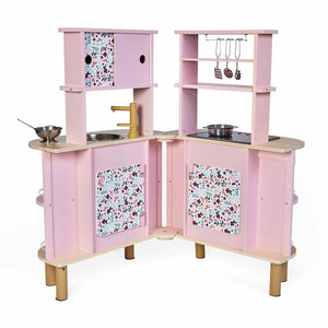 - Funzioni interattive complete: forno e lavatrice con manopole sonore, sportelli magnetici con oblò trasparenti e lavello in metallo con rubinetto in legno.