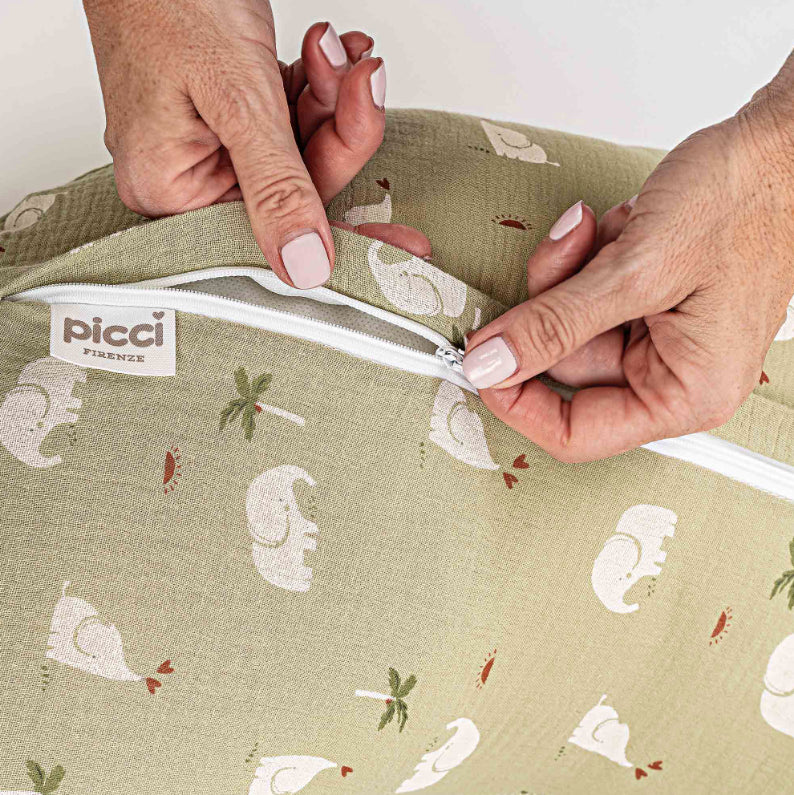 - Fodera 100% mussola di cotone: delicata sulla pelle, traspirante e ideale per un uso quotidiano.