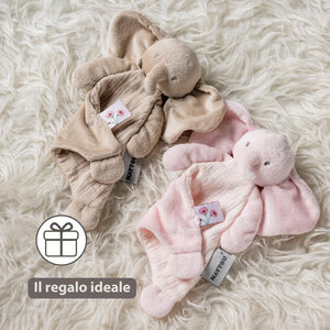 Disponibile nelle varianti cerbiatto ed elefantino in delicati colori armoniosi, questo doudou unisce funzionalità e dolcezza, diventando anche un’idea regalo perfetta per ogni occasione: nascita, battesimo o baby shower.