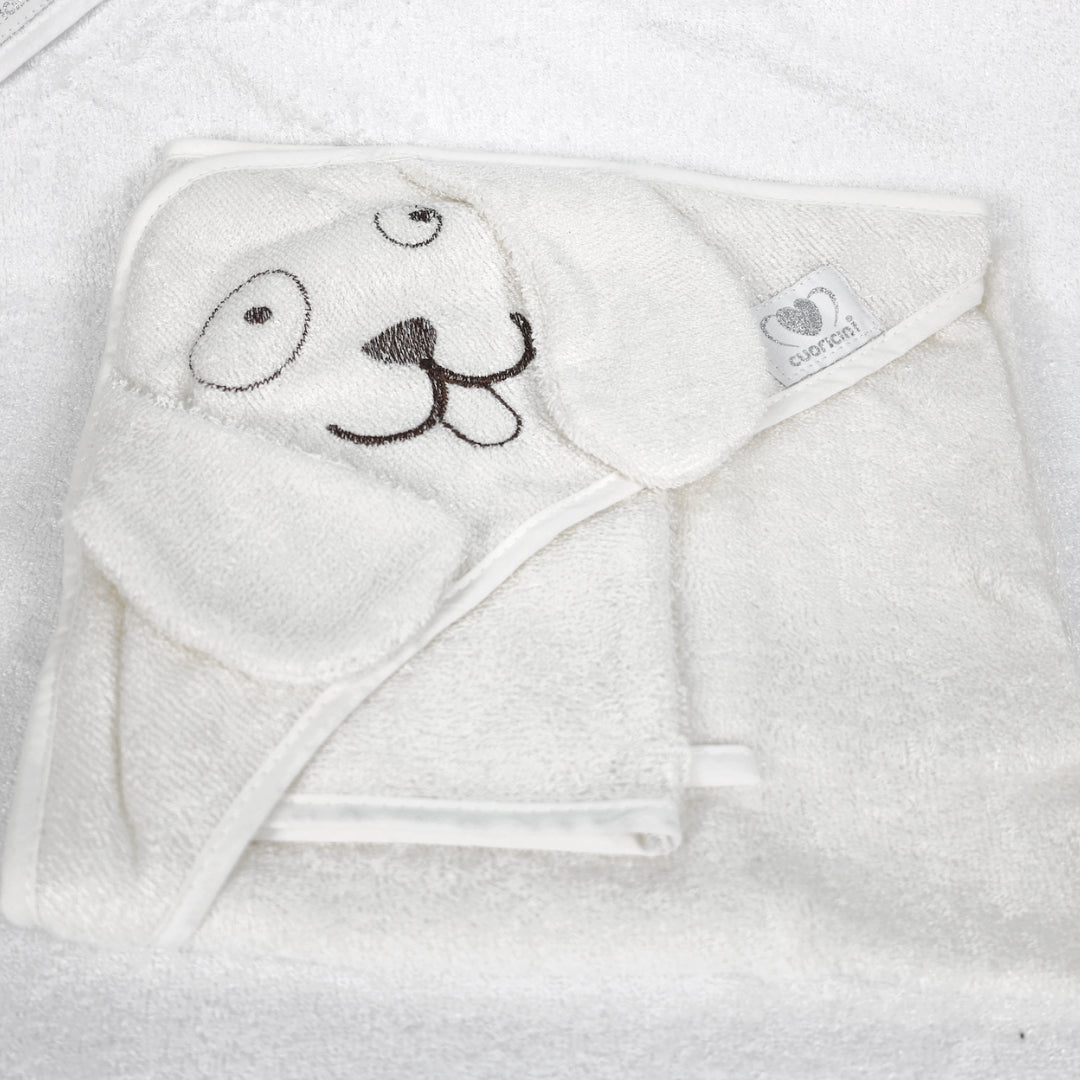 - Accessori inclusi: Triangolo ricamato in 100% spugna di bamboo (bianco o avorio), morbido e delicato sulla pelle del tuo bambino e guanto coordinato in spugna di bamboo, per un'igiene naturale e sostenibile.