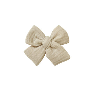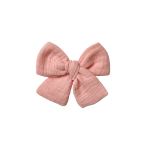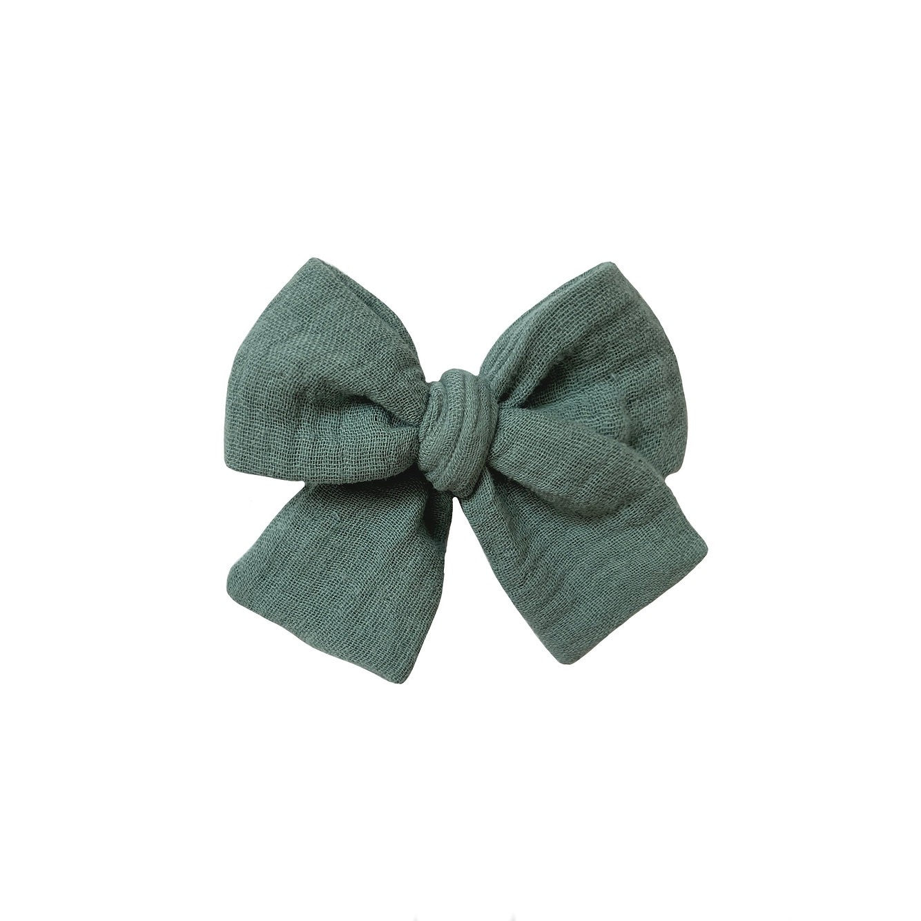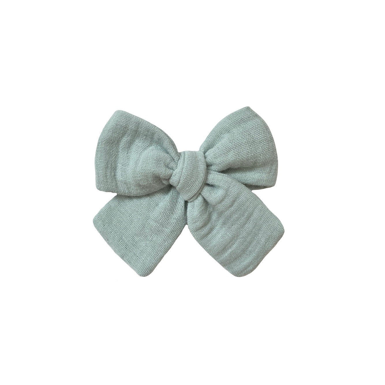 Il fermaglio Cucùsettete è realizzato a mano in mussola 100% cotone.