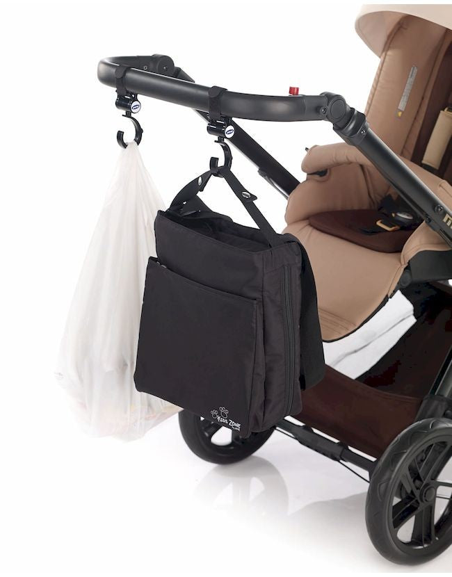 Il comodo gancio multifunzione universale Janè è utile per appendere le borse o qualsiasi cosa al passeggino o ad un appiglio.
