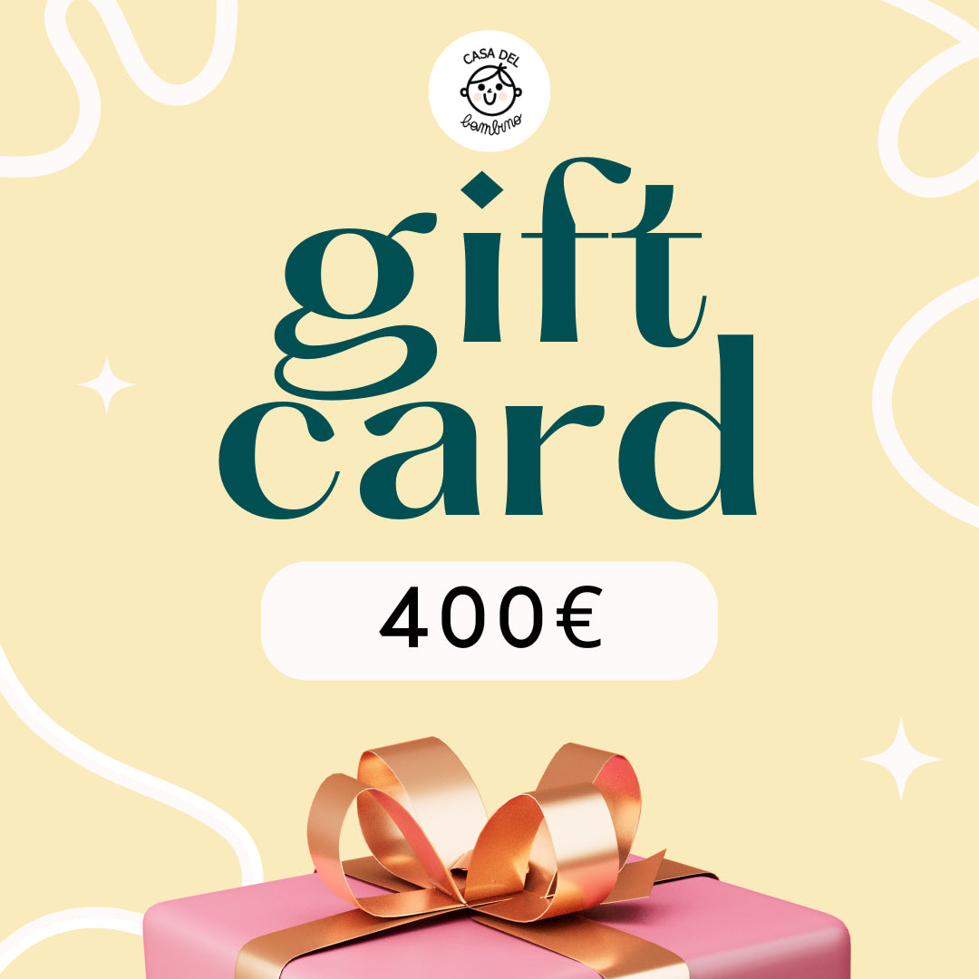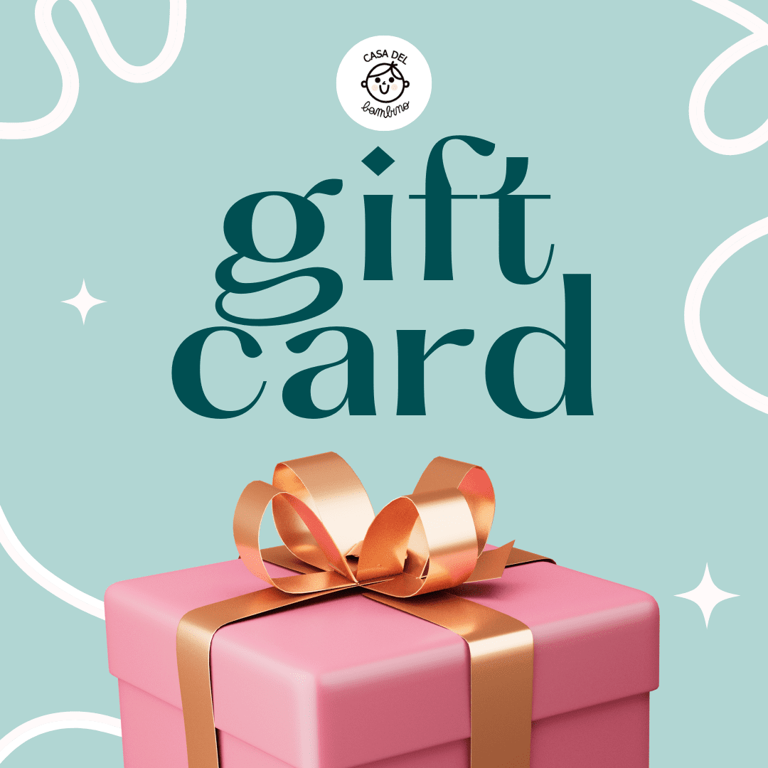 NOTA BENE: Per poter completare l'acquisto della gift card virtuale è necessario registrare un account. La gift card è utilizzabile solo online e non valida presso il negozio fisico di Casa del Bambino.