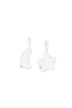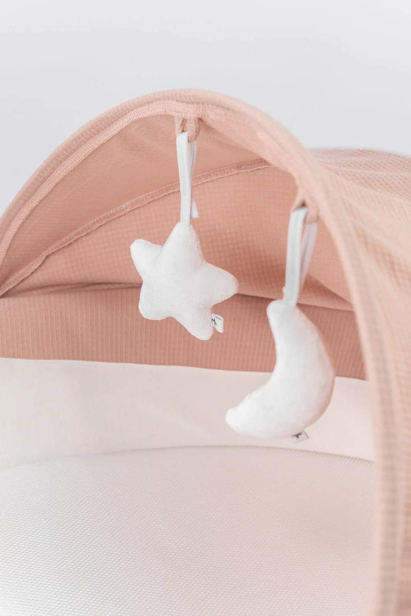 I giochini per il Baby Nest Bamboom sono nelle dolcissime forme di luna e stella, davvero delicati e di design sofisticato, permetteranno al piccolo di giocare e rilassarsi all'interno del comodo Baby Nest. Si inseriscono al tettuccio con un pratica chiusura a scratch e sono realizzati in materiale 100% biologico e certificato Oeko-Tex classe1.