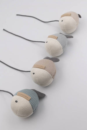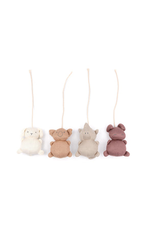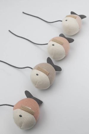 Caratterizzati da una morbida maglia naturale, i giochi sono sicuri per il tuo piccolo e si integrano perfettamente con i colori neutri ed eleganti della sua culla. Ideali da appendere alla nostra "Giostrina in legno", aggiungono un tocco di magia ad ogni momento della giornata.