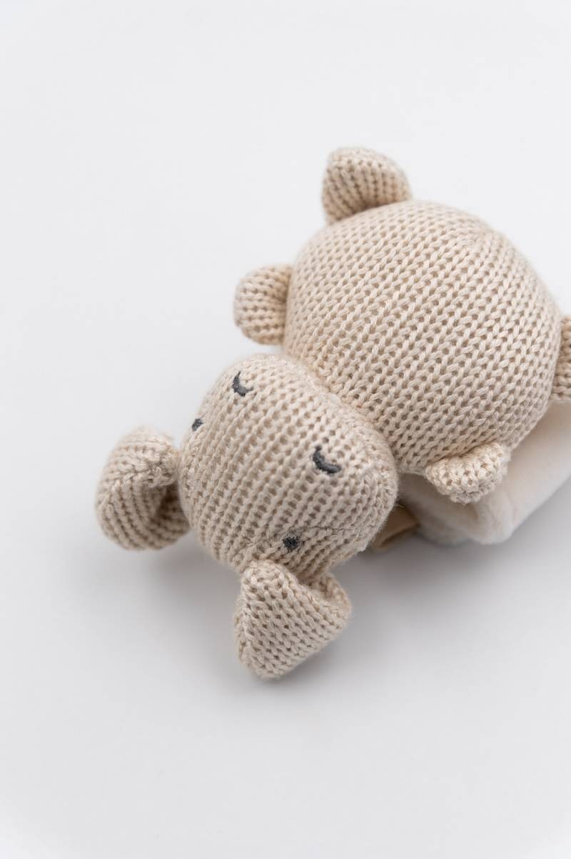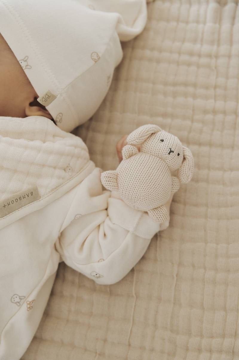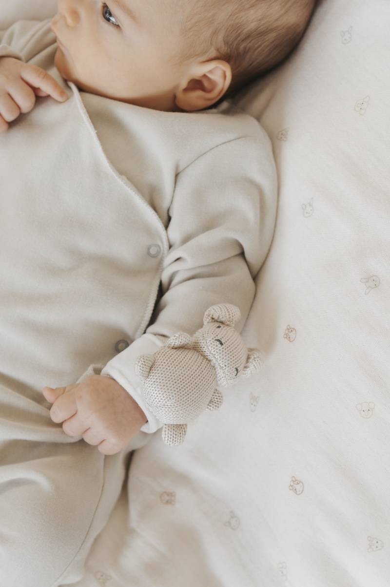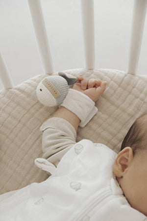 Braccialetto gioco soffice e delicato sulla pelle, ideale per intrattenere il tuo bimbo e supportare lo sviluppo dei sensi nel bambino. 100% viscosa di bambù organico.