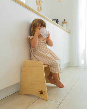 Baby Gradino di Babydreams è un gradino in legno pensato per sorelle o fratelli più grandi. Utile in casa: dalla cucina al bagno, ed è sfruttabile anche come sedia. Oggetto pratico, leggero e maneggevole in modo che il bimbo possa autonomamente trasportarlo con sé.
