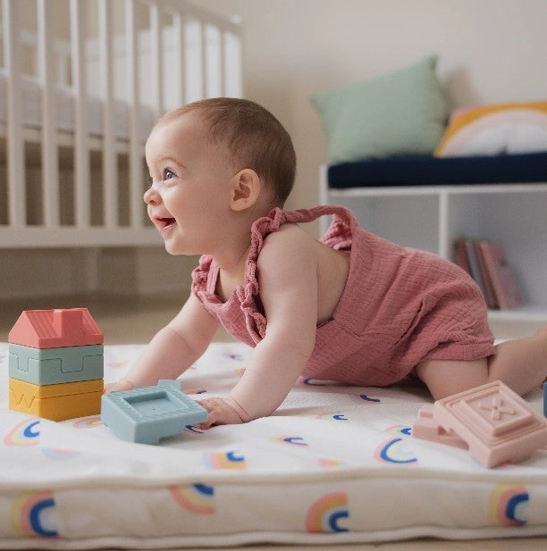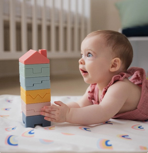 Facili da maneggiare e morbidi al tatto, i blocchi sono progettati appositamente per incoraggiare la motricità fine e la coordinazione occhio-mano. Possono essere impilati l'uno sull'altro per formare una torre o una casa, offrendo infinite possibilità di gioco.