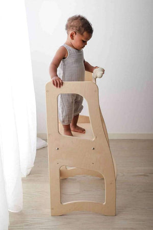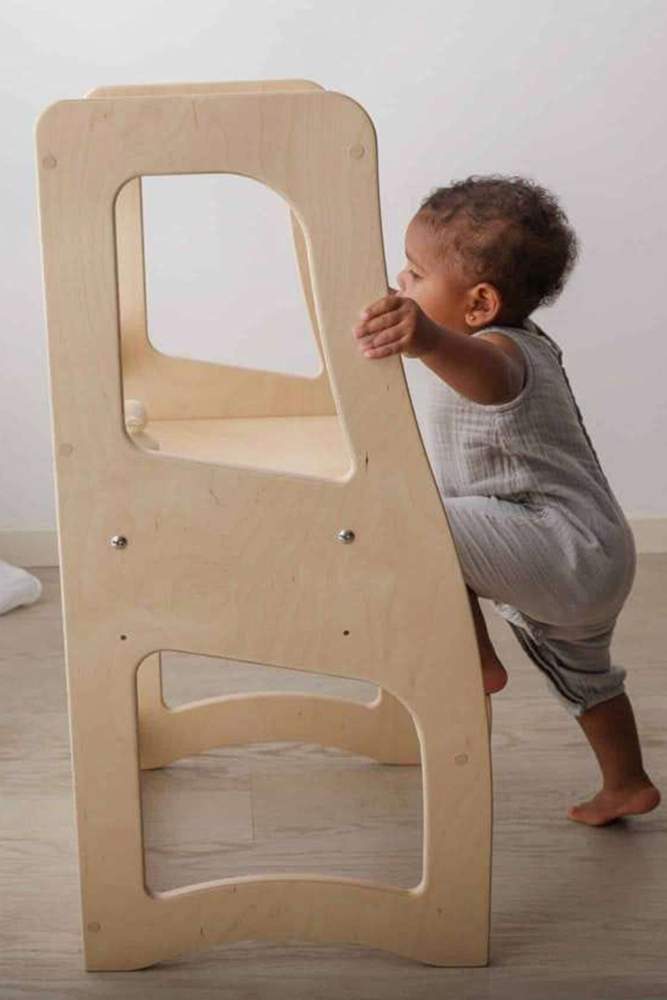 Il gradino alla base della torretta rende completamente indipendente il bambino nel salire e scendere e consente di raggiungere luoghi a lui inaccessibili, in totale sicurezza.
