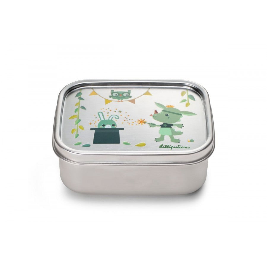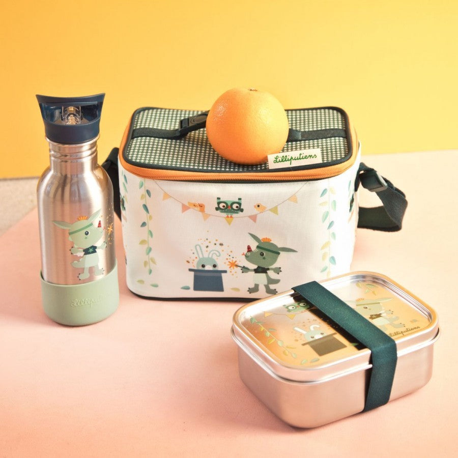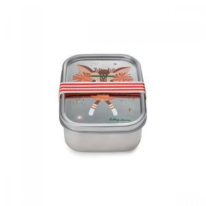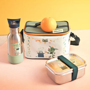 La lunch box è perfetta per trasportare il pasto del tuo piccolo, sia che vada a scuola, in gita o a fare un picnic. Grazie al coperchio sicuro e alla cinghia elastica, il cibo rimarrà ben fermo senza rischiare di rovesciarsi nella borsa. Questa lunch box rettangolare da 1,5 L è realizzata in acciaio inossidabile ultraresistente, progettata per essere utilizzata più volte, contribuendo a ridurre gli sprechi. I materiali selezionati sono trattati con cura per garantire che il sapore del cibo non venga alterato.