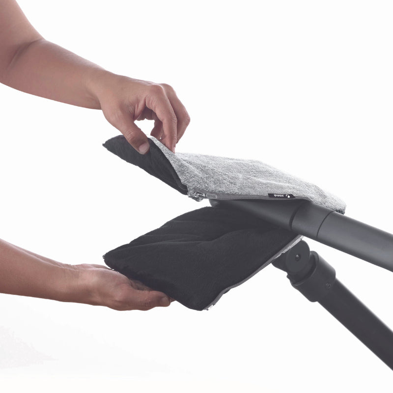 Calde manopole utilizzabili con i manubri di tutti i passeggini. Proteggono le mani del genitore dal vento e dal freddo quando si spinge il passeggino.