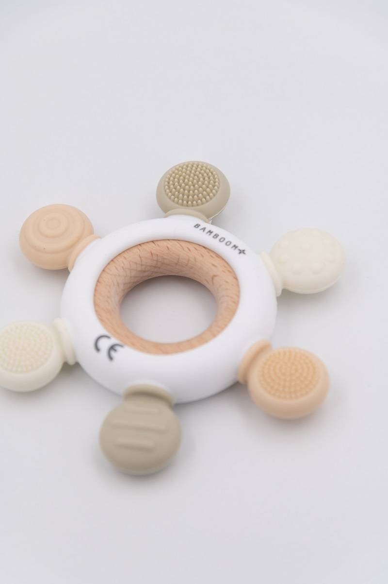 Massaggiagengive in legno naturale e silicone, indispensabile per il momento della dentizione donando sollievo alle gengive