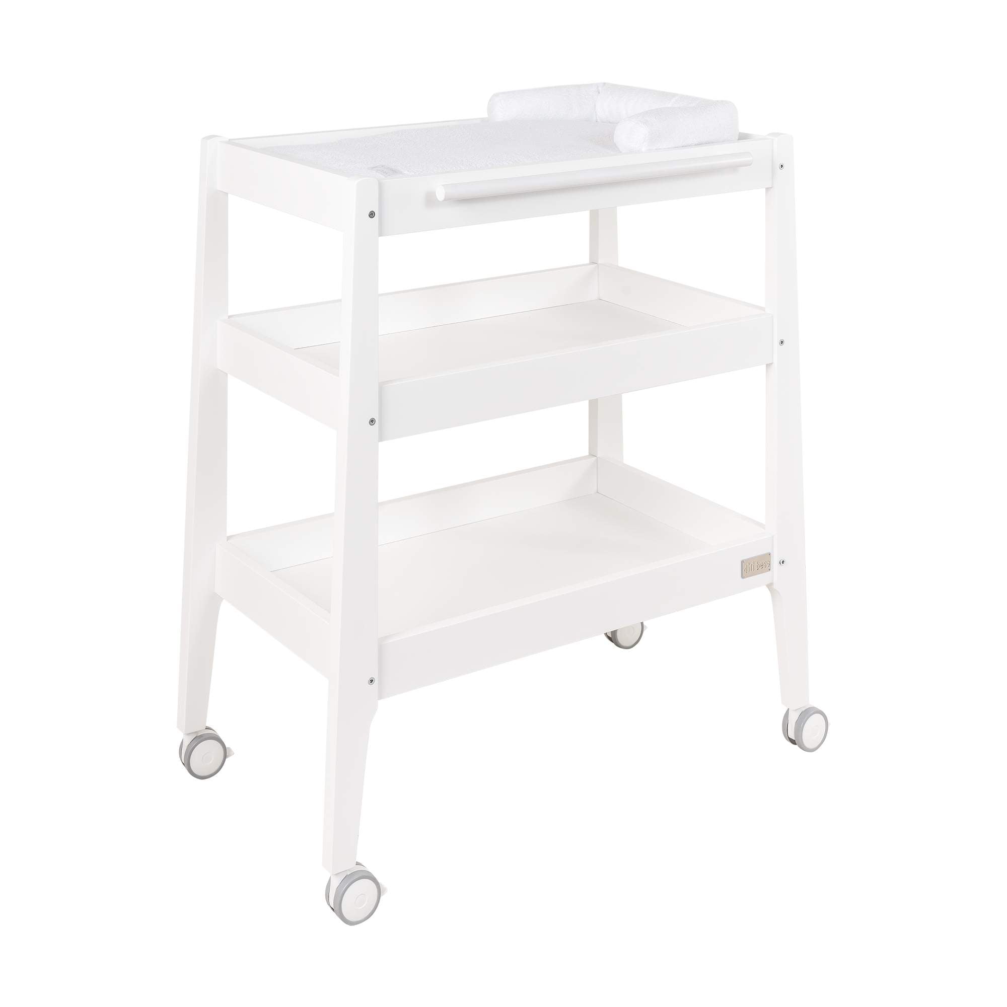 Grazie 4 pratiche ruote puoi spostarlo con estrema facilità. Utilizzalo con il Materassino Fasciatoio in PVC e il Coprifasciatoio in Spugna di Bamboo per rendere il mobile fasciatoio più sicuro ed accogliente.