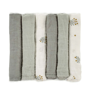 Mussole multiuso realizzata in tessuto di cotone naturale e bambù. Di piccole dimensioni, pratiche come salvietta, doudou, bavaglino o panno per il reflusso. Benefici del bambù: antiacaro e antimicotico naturale, assorbe l'umidità in breve tempo, isolante termico, ecologico perché risorsa sostenibile.
