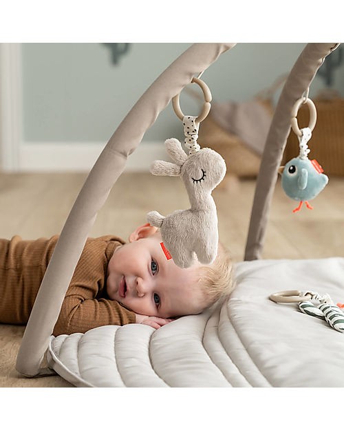 Scopri un mondo di gioco e stimolazione con la Palestrina Attività Tiny Farm di Done by Deer, perfetta per accompagnare il tuo bambino nelle sue prime scoperte. Questa pala, appartenente alla nuova collezione Tiny Farm, offre uno spazio morbido e sicuro dove il tuo piccolo può esplorare, giocare e sviluppare le sue capacità sensoriali. Con archi removibili e giochi da appendere, il tappetino trapuntato stimola i sensi del bambino, favorendo lo sviluppo tattile, visivo e uditivo durante il tummy time o mentre gioca in totale comfort.