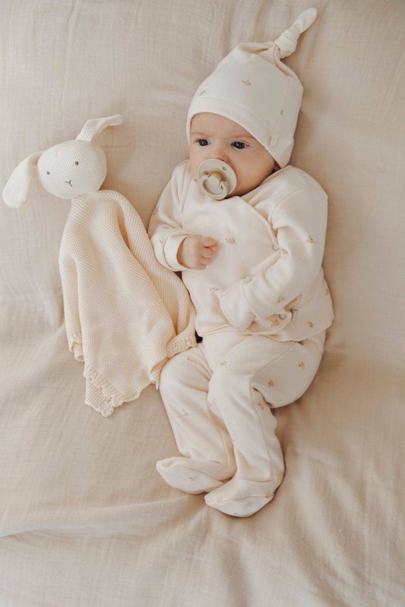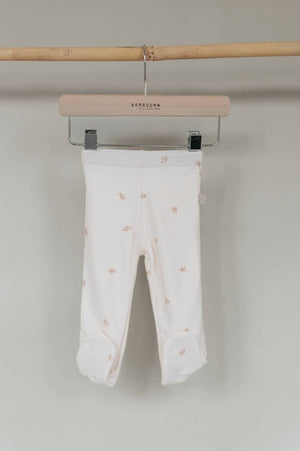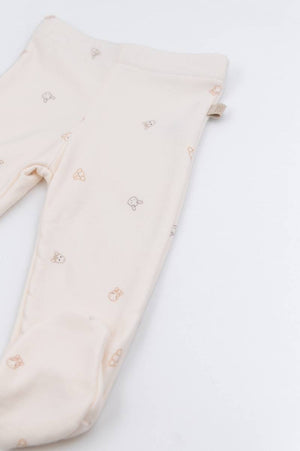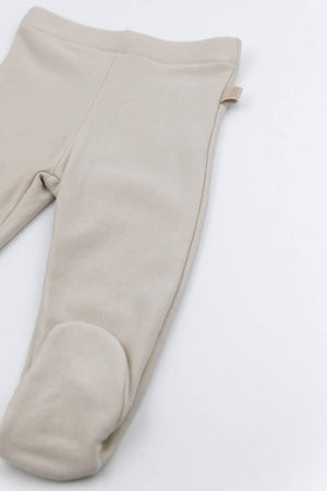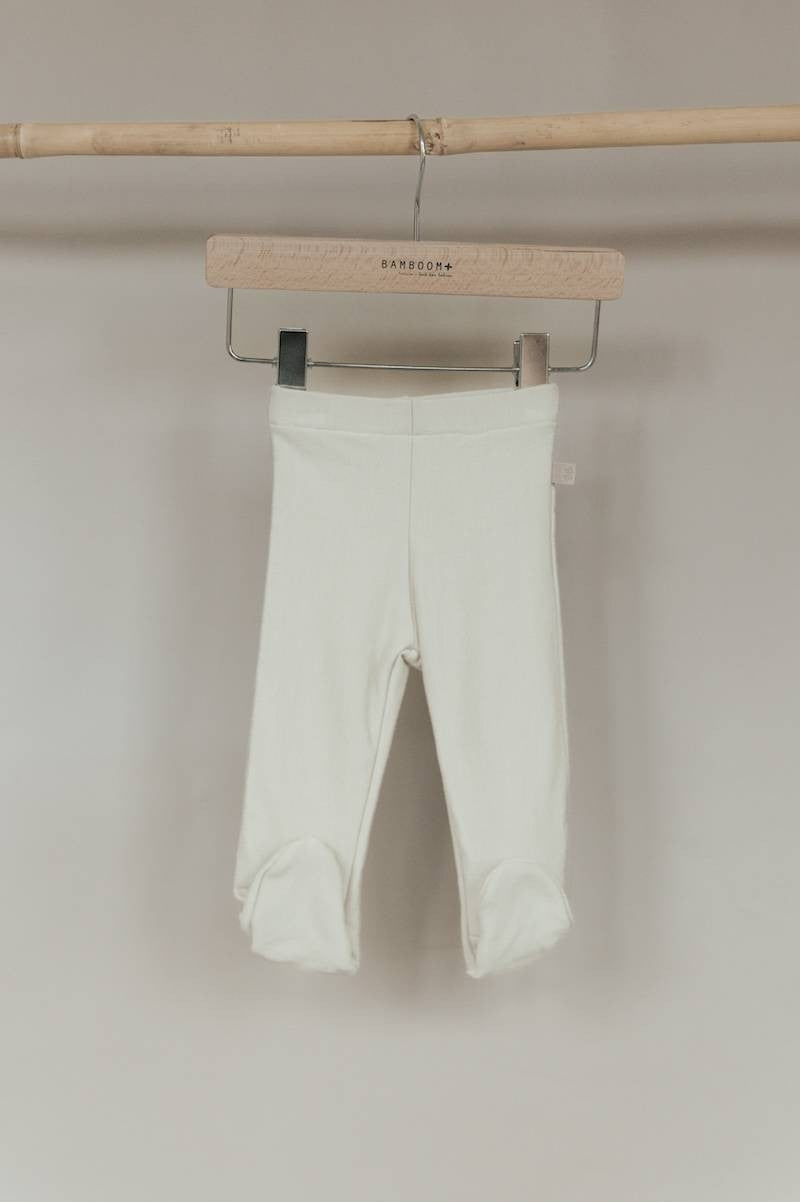 Pantaloni con i piedi, morbidi e delicati sulla pelle del neonato. Il tessuto della collezione Pure è un cotone di bambù organico con un lato in jersey pettinato. Questa tecnica dona al tessuto un effetto semi-felpato, mantenendo una morbidissima freschezza. Morbidissimo e delicato, realizzato per la pelle sensibile dei neonati, ideale anche per chi soffre di dermatite.