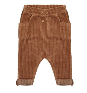 Morbidissimi pantaloni larghi con tasche e bottoni in legno, comodi per garantire una perfetta libertà di movimento.