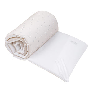 Il paracolpi della Linea Natural di Dili Best è composto da 3 lati che coprono parte del lettino per far riposare il tuo bimbo in tutta sicurezza. È double face: da una parte in fantasia, dall'altra tinta unita!