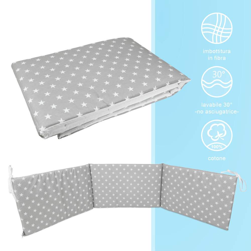 Il paracolpi lati corti lineare per lettino neonato Baby Idea® è realizzato in tessuto 100% cotone.