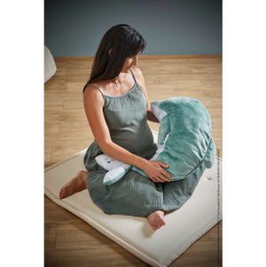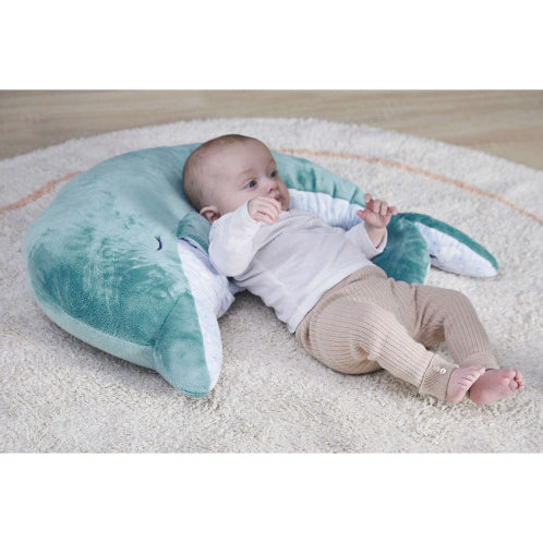 Questo grande e morbidissimo peluche (60 cm di lunghezza per 63 cm di altezza) è multifunzione e accompagna l'evoluzione del neonato. È perfetto da usare sin dalla nascita: questo adorabile delfino in peluche rassicurerà il neonato durante la crescita, aiutandolo a imparare a sedersi e rilassarsi. La tasca sul dorso contiene un sacchetto con fiori di lavanda. La lavanda favorisce il rilassamento e l'addormentamento grazie alle sue proprietà tranquillizzanti.