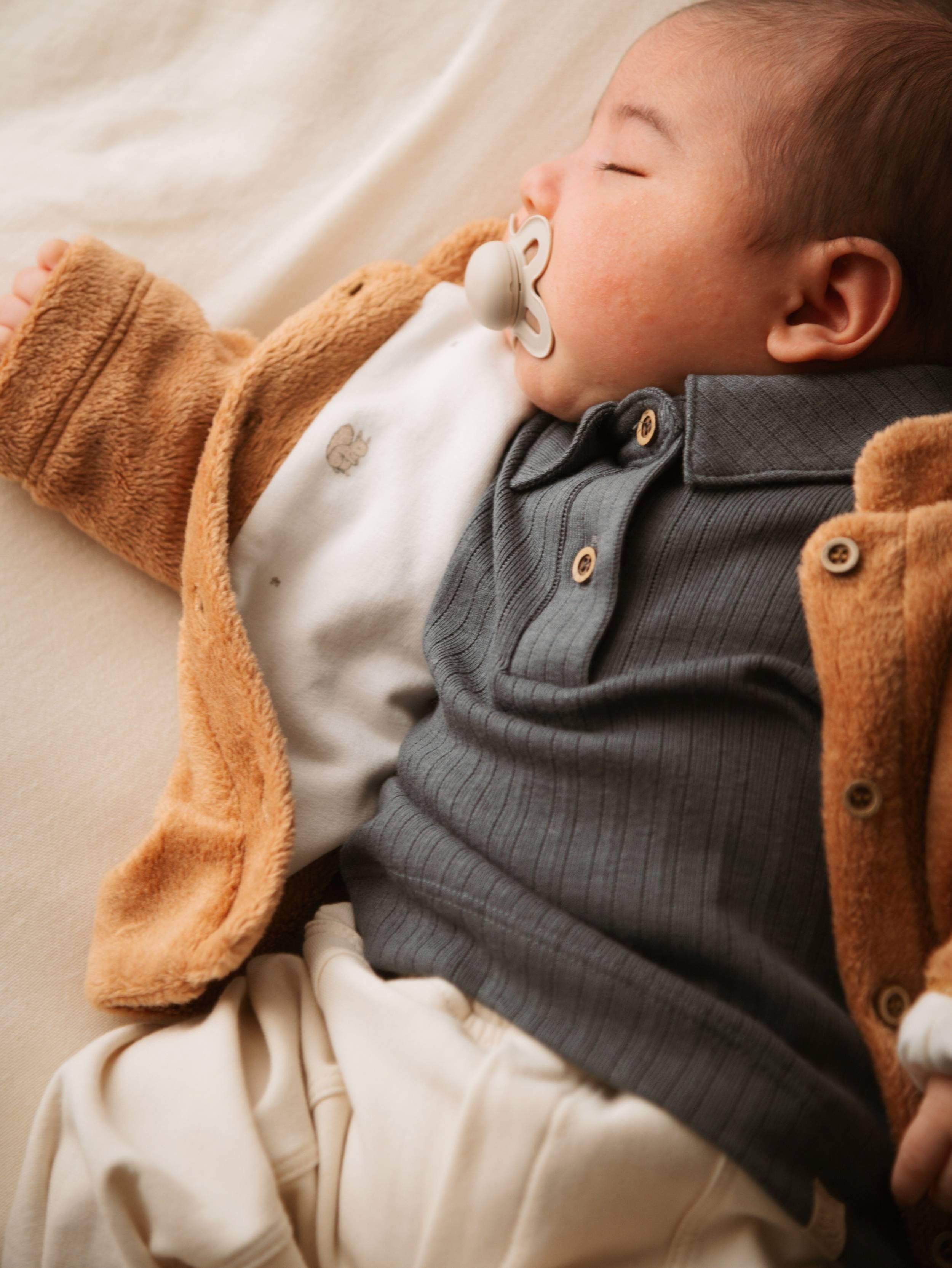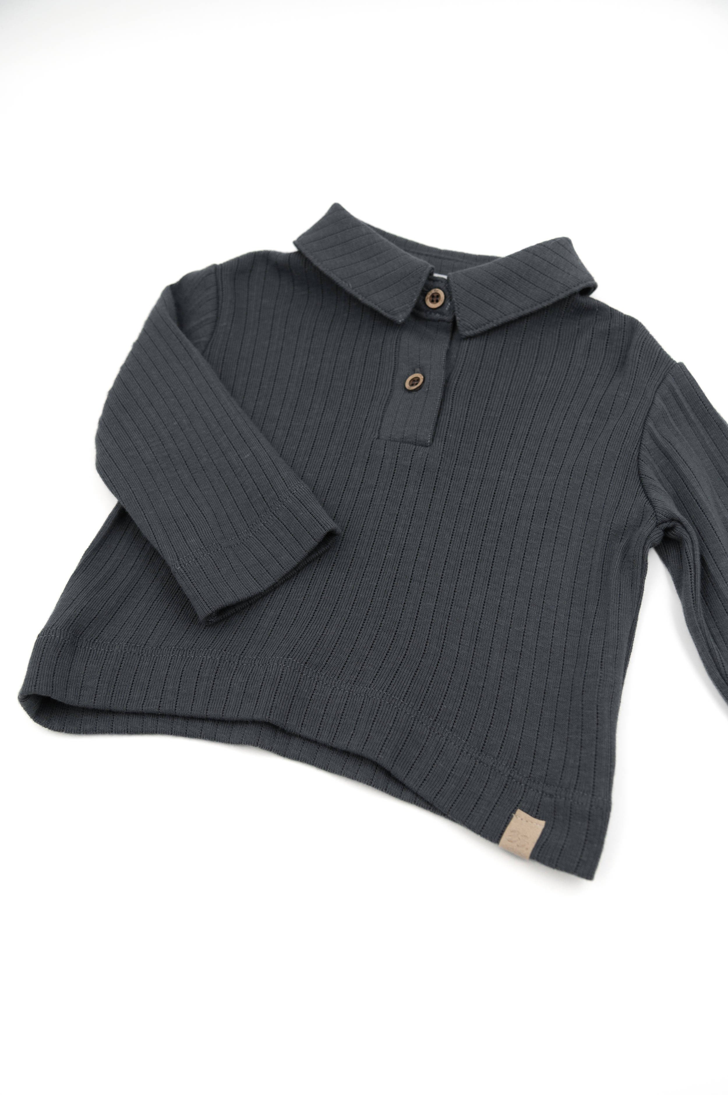 Polo a Maniche Lunghe: un capo versatile e raffinato, realizzato con materiali naturali e sostenibili, per accompagnare il tuo bambino con stile e delicatezza.